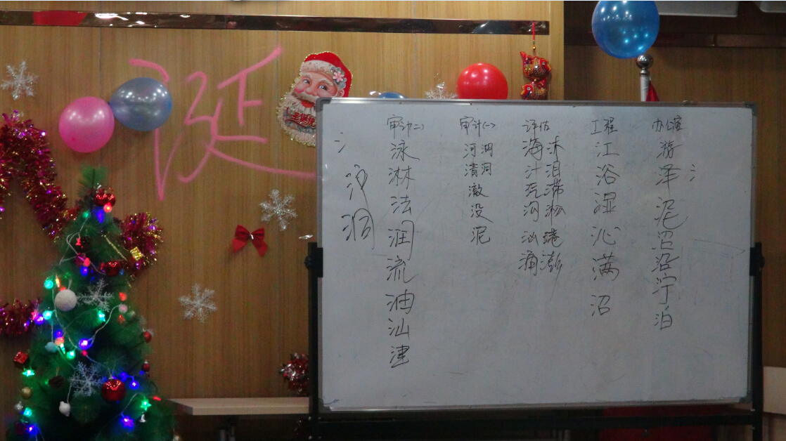 今年的平安夜活動比起往屆,增添了許多亮點。此次聯(lián)歡的節(jié)目內(nèi)容形式多樣、豐富多彩。聯(lián)歡以張局長致辭開場,集體許愿將一片溫馨融洽的氣氛帶入了現(xiàn)場;集體熱身舞蹈更是讓大家感到了濃濃的節(jié)日氛圍;基建部的詩歌朗誦《我希望》讓大家經(jīng)受了一次思想的洗禮,審計一部動感十足的一曲《奔跑》更是深受大家的喜愛;審計二部《租個女友回家過年》恢諧生動的表演引來一陣又一陣的笑聲;評估部精彩的《舞蹈大串燒》更是讓大家忍不住集體點贊;緊張又刺激的腦筋急轉(zhuǎn)彎、踩氣球、猜字謎、削蘋果等游戲,一次次的將晚會氣氛推向高潮。掌聲和歡呼聲此起彼伏,臺上臺下成了一片激情四溢的海洋。辦公室、財務部、文化部的詩歌朗誦《相信未來》之后,全體家人熱情合唱了司歌《我相信》,表達了大家對公司的深深的情懷和對未來無限的希望。
