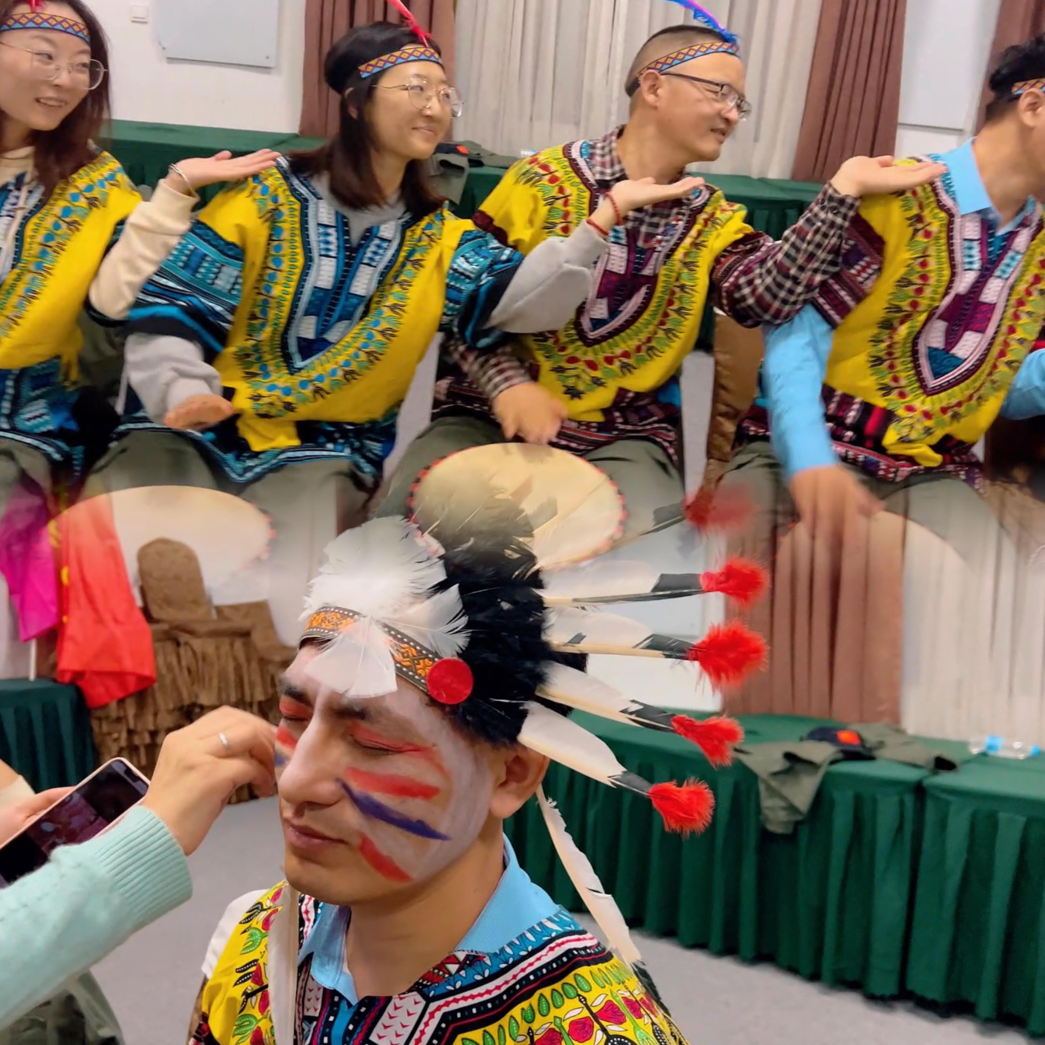 非洲鼓是非洲普遍流行的樂(lè)器,是非洲傳統(tǒng)音樂(lè)之魂, 11日晚,教練進(jìn)行簡(jiǎn)單的說(shuō)教之后將所有員工重新分隊(duì),每隊(duì)選出酋長(zhǎng)、王妃、歌舞伎,最后比賽曲子《大中國(guó)》。